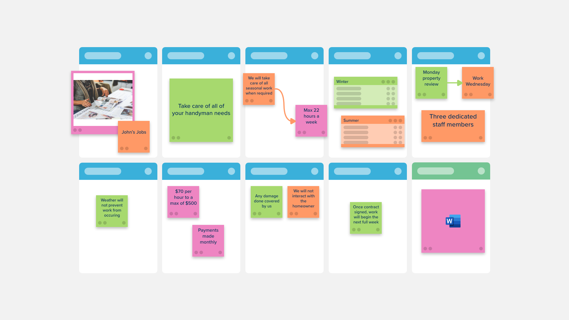 Learn more about how to use this process in our article Your Guide to Stormboard’s Statement of Work Template