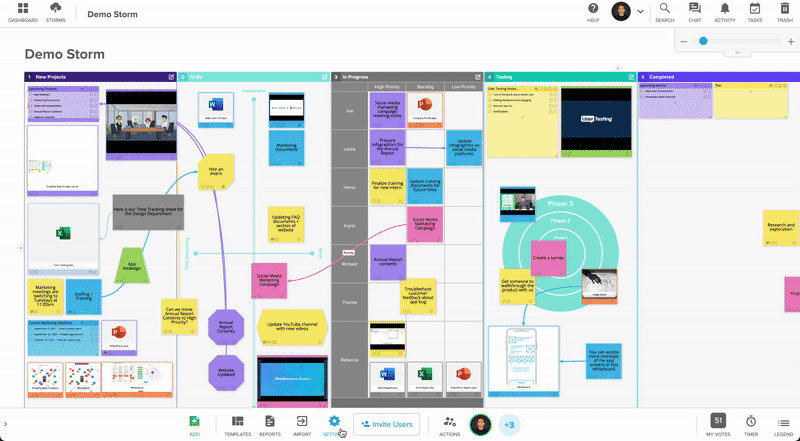 Stormboard’s sticky notes are digital versions of the real thing! They come in different colors, shapes, and sizes that you can customize to suit the way you work.